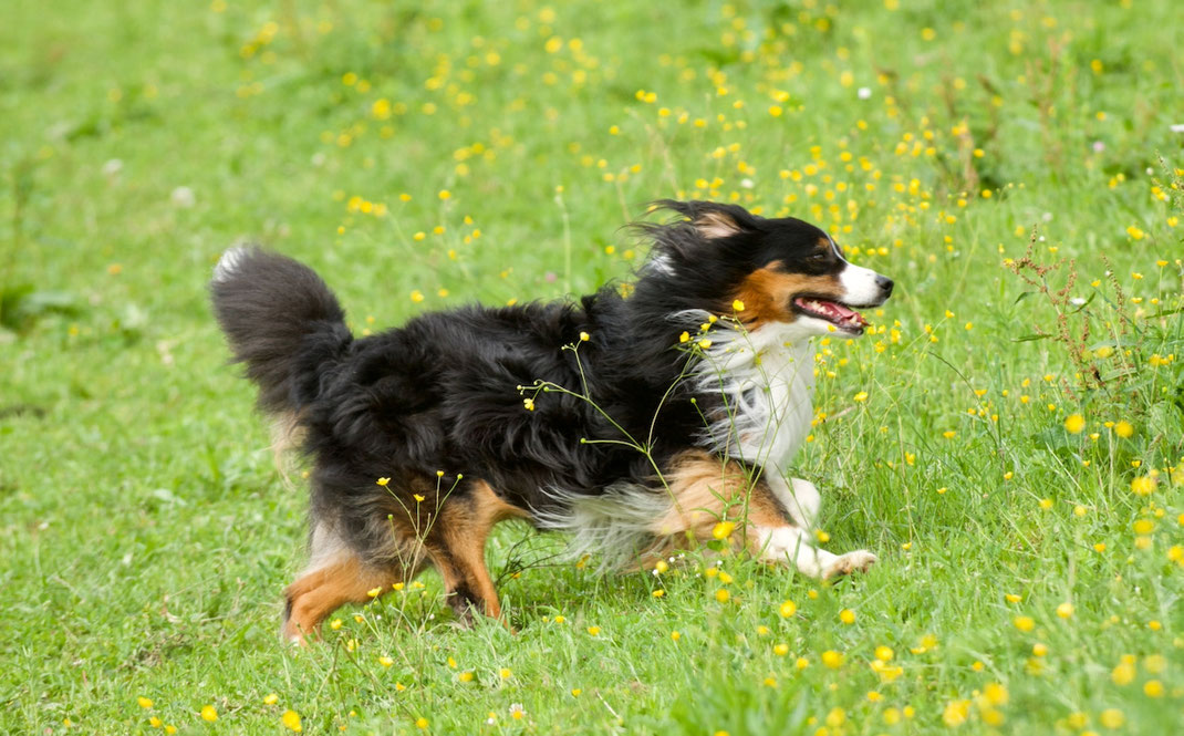 Nachdem wir zwei Border Collies hatten, holten wir unseren ersten Australian Shepherd zu uns. Von einer sehr erfahrenen, ganzheitlich und naturheilkundig arbeitenden Züchterin. Wir hofften, die idealen Voraussetzungen für einen gesunden, glücklichen, unbeschwerten Hund gefunden zu haben. Am Tag der Abholung regnete es. Unser Welpe kam mit seiner Hundemama auf uns zu, wir spielten mit ihm und seiner Mama eine gute Weile, tratschten mit der Züchterin und dann kam der Zeitpunkt des Abschieds. Welpen sind sehr neugierig und wollen alles entdecken. So ging er voller Freude mit uns mit, wir gingen noch ein paar Schritte auf einem Waldweg, damit er sich erleichtern konnte und stiegen mit ihm ins Auto ein. Mit an Bord war sein Kuscheltier, das bei ihm und seinen Geschwistern die ganze Zeit war und den Geruch seiner Hundefamilie trug. So war der vertraute Geruch bei ihm und ich setzte mich mit ihm auf die Rückbank, wo er gleich einschlief und bis auf ein paar Pinkelpausen sieben Stunden durchschlief bis nach Hause. Ich schlief drei Wochen bei ihm im Wohnzimmer und behütete ihn Tag und Nacht, damit ihm die Eingewöhnung leichtfiel. Er freute sich über unseren alten Border-Collie-Herrn und war ein lustiges, sehr freches Kerlchen.